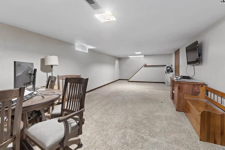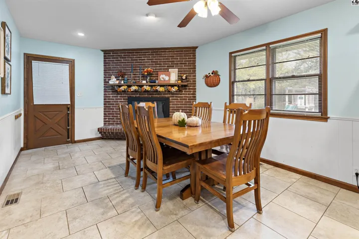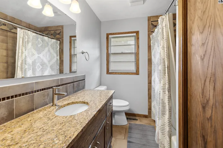 +"PublicRemarks": "Welcome to this charming brick home that has been beautifully updated! Oversized windows in the living room hi-light the beautiful space and flooring. Enjoy a kitchen island and appreciate the extra deep kitchen cabinets that allow for plentiful storage. Take in the elegant tile floor in the kitchen and dining/hearth room. The centrally located laundry on the main level is most convenient. The updated primary suite offers an oversized walk in closet and a half bath with sink and toilet. The hallway bathroom boasts updated tile flooring and an oversized granite countertop with a tub/shower combo. New carpet in the main level bedrooms is just one more cozy touch to this home. Additionally, closet organizers have been built into the 3 main level bedroom closets. Downstairs you will find a newly carpeted family room and fourth bedroom along with a large unfinished storage area . Outside, the basketball goal and the covered bike shed are just waiting for a chance to be used. An additional storage shed in the back yard helps tuck away all those extra tools and gadgets. A UGS manual system allows for more time to enjoy the wood and wrought iron fenced backyard area. The trees lining the back of the property offer privacy and serenity. All of this is nestled in a lovely neighborhood that offers a touch of nature with a serene walking path."