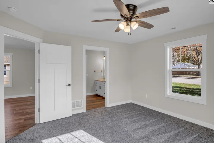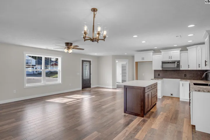 +"PublicRemarks": "Looking to downsize? What a great place to be. This well built home has just been finished and ready for its first owners. All ground level, no steps. The open floor plan offers a beautiful kitchen, with a large quartz island, plenty of storage, soft close drawers. The quartz is also found in both of the bathroom vanities. Pella windows let in natural light throughout the home that makes the fresh paint and laminate plank flooring shine. 2 bedrooms and 2 full bath, one being the master bath, opening into a huge walk in closet. Laundry is located just off the garage for practicality. In the back has a small patio for grills and quiet time. The yard has mature trees, underground sprinklers, and new lawn, the large west yard has been plumbed to extend sprinklers that direction or there is plenty of room to put a storage shed."