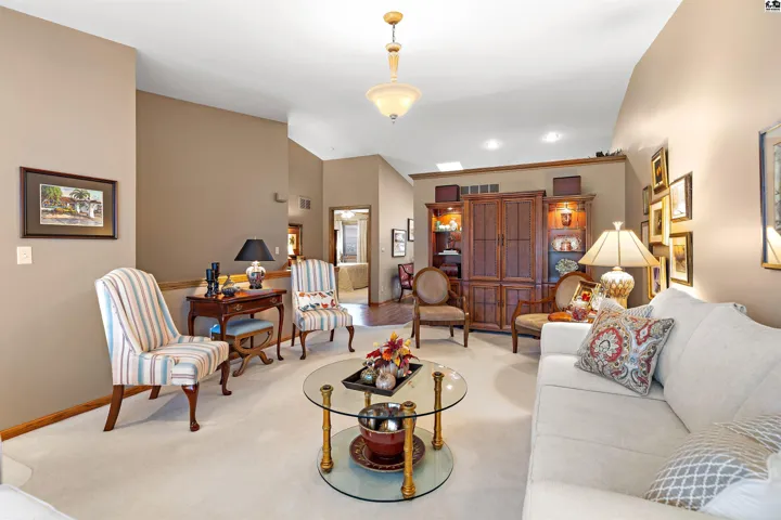 +"PublicRemarks": "Welcome to this spacious and well-maintained townhome offering a comfortable layout and an easy lifestyle. The main floor features an open living and dining area with vaulted ceilings, providing a warm and inviting atmosphere. The primary suite offers a private bath with dual vanity and walk-in closet, while a second main-floor bedroom provides flexibility for guests or an office. The finished basement offers a large second living area, additional bonus rooms, and full bathroom perfect for extra living space, hosting, or hobbies.Enjoy the convenience of an HOA. The attached 2-car garage offers ample storage and easy access."