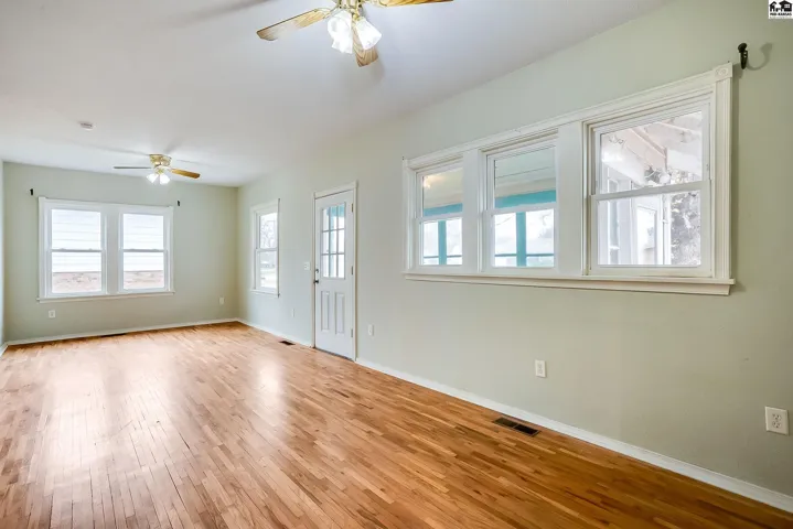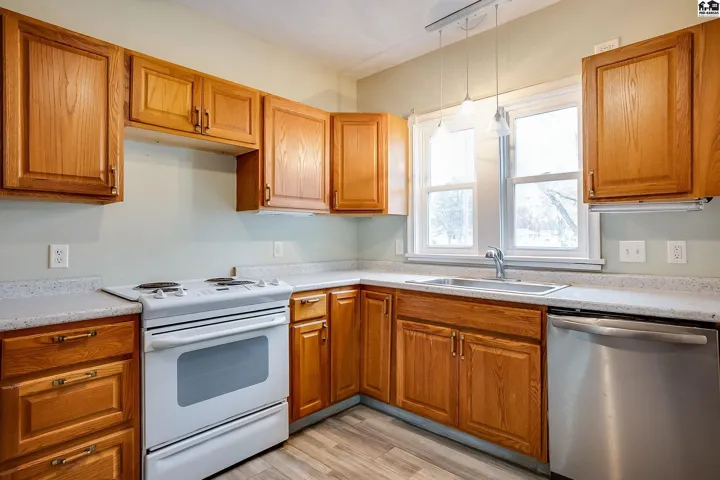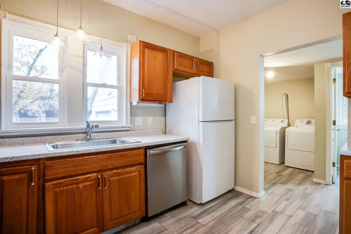 +"PublicRemarks": "If you are needing a home with some handicap accessibility this property might be a good fit. The cottage style home with a light and airy interior has a modern vibe with its white woodwork. The large living room/dining room and both bedrooms have attractive hardwood flooring. The Kitchen, laundry room, and both bathrooms have updated luxury vinyl plank flooring. The primary bedroom has a private bath with a large walk in shower. The 2nd bath is located off the laundry room area. The kitchen comes with an electric range and refrigerator plus plenty of cabinets for storage. The washer and dryer are included in the laundry room. The basement as potential for finishing additional living space. Central heating and air conditioning units. The hot water heater was replaced 7/7/23. A double car garage + corner lot location top off this desirable property!"