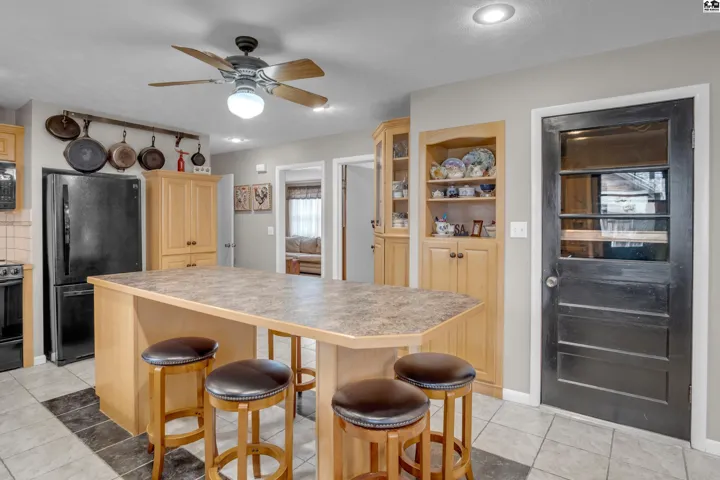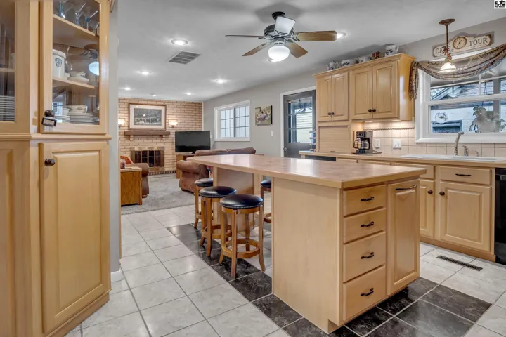 +"PublicRemarks": "Take a look at this sharp ranch-style home, all on one level and filled with the owner's pride! Step inside to a spacious living room that welcomes you with warmth and comfort. The updated kitchen is sure to impress with beautiful cabinetry, generous countertop and cabinet space, and sleek appliances. It flows seamlessly into the inviting family room featuring a cozy wood-burning fireplace perfect for family gatherings or quiet evenings at home. This property offers 3 bedrooms and 2 full baths, providing functional space for family guests or a home office. Outside, you'll find a nice covered patio, a large yard with alley access, and a detached shop with tons of potential to bring your vision to life and build equity quickly. The home is located near schools and parks, making it an ideal spot for convenience and comfort. Call for your own showing today."