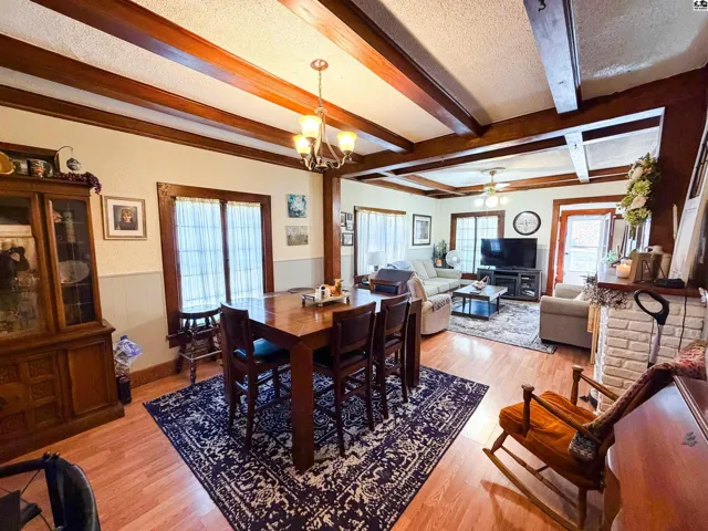 +"PublicRemarks": "Welcome home to this delightful three-bedroom, one and half bath bungalow bursting with classic Craftsman character. From the moment you step inside, you'll appreciate the beautiful woodwork and timeless charm throughout. The spacious living and dining areas flow seamlessly together and are anchored by a cozy wood-burning stove- perfect for both everyday living and entertaining. The kitchen complete with a double oven perfect for all those who love baking, offers convenience and functionality, with main floor laundry and an updated bathroom just steps away. Downstairs the basement provides additional living space, including a bonus room and a second living area with the potential for a future kitchen- ideal for guests, hobbies, or multi-generational living. Enjoy the outdoor living on both the covered front porch and covered back patio, perfect for relaxing or hosting friends. Don't forget about the additional entertaining space in the back yard with a cherry, apple and peach tree. The oversized garage offers exceptional access from both the front driveway and the alley, with doors on each end of added convenience. All of this is located just minutes from shopping, dining and everyday amenities in the heart of Hutchinson, KS. This home offers charm, flexibility, and location- don't miss your opportunity to make it yours!"