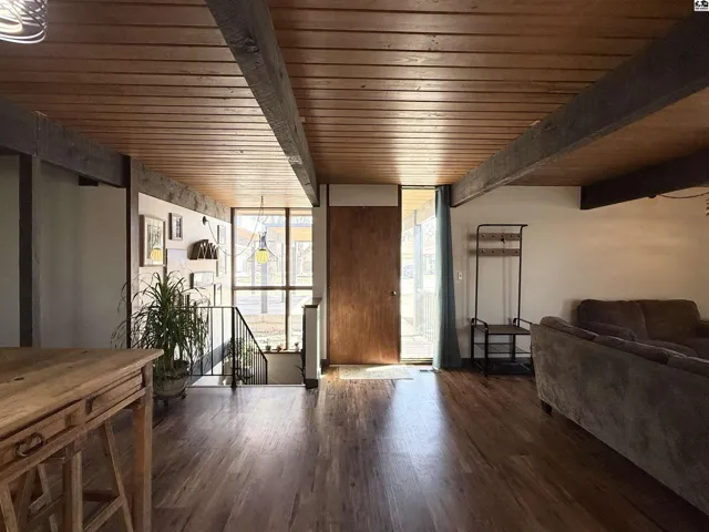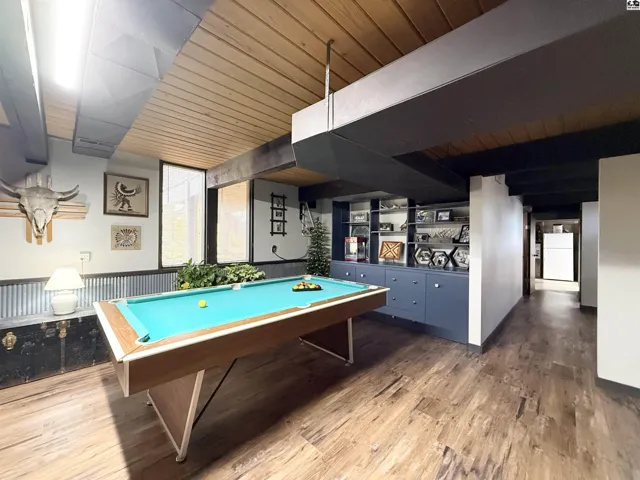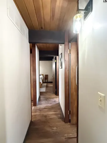 +"PublicRemarks": "This Mid-Century Modern home has clean lines, a low-profile roofline, and a classic two car carport on the exterior, while the interior showcases exposed beams, warm wood ceilings and large windows to bring the outdoors in. This three bedroom, two and a half bath home feels inviting and has an abudance of character and functionality. The main floor features the owner's suite, including a large walk-in closet and half bath. The walk-out basement boasts large windows in the family/game room, a wood burning stove (installed in 2022), a bonus space ideal for a work out room or home office, the third bedroom and an updated full bathroom. The storage room/workshop area includes a door that walks right out to the backyard. A large storage shed and deck that overlooks the privacy fenced backyard complete the appeal. To own this beautiful Mid-Century modern home is a rare opportunity in this quaint small town. Walking distance to Buhler High School or Buhler Grade School."