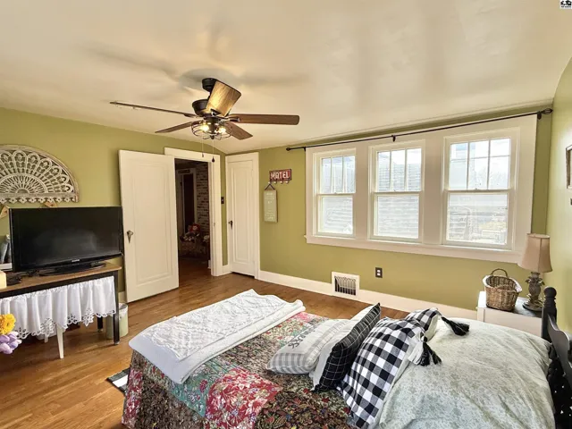 +"PublicRemarks": "This beautifully maintained 1½-story home in College Grove blends thoughtful updates with timeless character and charm. From the moment you step inside, you’ll appreciate the original details that have been carefully preserved, including stunning glass door knobs, classic built-ins, and gorgeous hardwood floors throughout much of the home. The main level offers a welcoming living room, formal dining room, and a light-filled flex space that feels like a sun porch…perfect for a sitting area, office, or hobby room. You’ll also find the kitchen, a versatile laundry area that could double as a cozy breakfast nook, a spacious main-floor bedroom, and an updated full bathroom. Upstairs features an additional living area, two generously sized bedrooms, and a convenient half bath. The unfinished basement provides excellent storage space. Situated on a large corner lot, the exterior amenities include a cozy covered front porch, attached two-car garage, privacy-fenced yard, patio, irrigation system, and a large storage shed. This home offers both comfort and functionality inside and out."