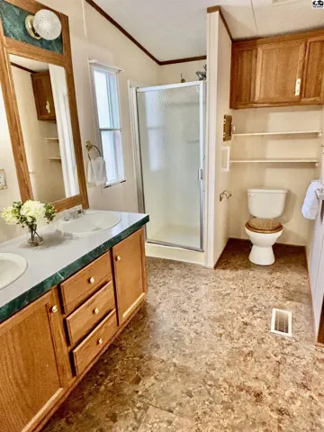 MOVE Right In! This one owner home is in great shape and ready for you to enjoy. Country kitchen is designed for efficiency, appliances, and a walk-in pantry/laundry room. Split bedroom plan with the owners’ suite, walk-in closet, with spacious 4 piece bathroom on the South end of the home with bedrooms 2 & 3 along with full bath on the North portion of the home. Outside extras include the covered front porch, covered back entry with patio, and a private storm shelter installed by the homeowner for extra piece of mind. This home is currently located in Mustang Communities and Buyer/tenants must be approved by the Park prior to purchase. The tongue and axles are included if you want to move it to your own patch of paradise. Call today to schedule a private tour.