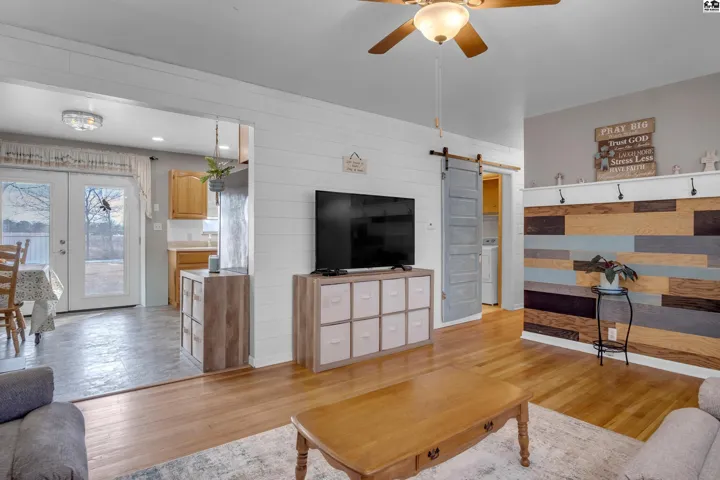 +"PublicRemarks": "Welcome home to this charming 3-bedroom, 1-bath home that blends comfort, convenience, and low-maintenance living. Inside, you'll find beautiful hardwood floors throughout, neutral paint tones, and an abundance of natural light that creates a warm and inviting atmosphere. The kitchen features beautiful cabinets with ample storage and newer appliances, making it both functional and efficient. The hall bathroom is conveniently located adjacent to the laundry area. The washer and dryer are included for added ease. The home also boasts plentiful built-in storage throughout, a one-car attached garage, and a fully fenced yard. Step outside to enjoy a peaceful backyard with mature trees and a storage shed to hold all the extras. Home is located in a desirable neighborhood close to parks and schools. Recent updates include a new roof, new guttering, fresh interior paint, landscaping improvements, and sleek appliances. making this home truly move-in ready."