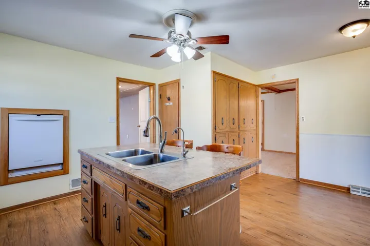 +"PublicRemarks": "Three bedroom, 2 full bath ranch with oversized two car garage (30 x 24) with alley access. Bonus room in front was used as a nail salon but could be another living area. Large front living room with cozy room in the back for extra living space. Updated kitchen with newer stove and microwave. Center island, pantry and lots of storage. Room for table too! New roof 2019. Large deck with access to fenced yard. Walking distance to Wiley School. Check out this great home!"
