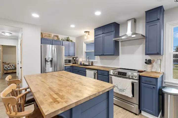 +"PublicRemarks": "Lovely home, updated and feels like new on just over one-half acre in the Buhler school district. This three bedroom and two bath home has a very open floorplan for the living, dining and kitchen area. The kitchen features a large center island for casual seating or projects with an adjacent spacious room that can be used as a second living room or a dining room. A partially separated and large area is being used as the family living room. A recent addition to the home provides a very spacious laundry and a second bathroom. This area was once joined to the owners bedroom and could be re-opened for a private bath entry. Newer windows bring in plentiful natural light, laminate flooring, new cabinetry and other details make this home very inviting. A patio door leads to a half-acre backyard bordering a vacant field and feels like country, just minutes from the 17th Ave corridor, hospital and schools. A detached large garage and workspace provide space for toys and hobbies. This updated and beautiful modular home is on a poured concrete foundation and has a stick-built addition. See to appreciate all of the homeowner updates. Seller preferred closing date is on/about May 18, 2026."