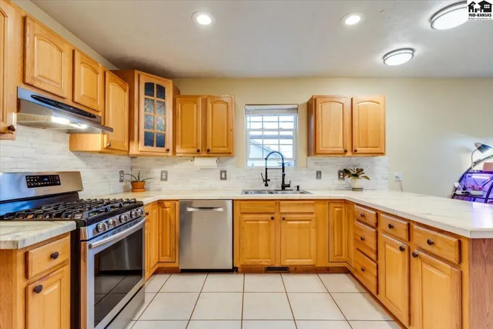 +"PublicRemarks": "Welcome home to this five bedroom three full bathroom home in the Buhler School District! You will appreciate the updated and move in ready condition of this home in a welcoming northeast neighborhood of Hutchinson. This property has three main floor bedrooms, a primary bedroom with en suite and another full bathroom. Cozy living room with a gas fireplace and spacious kitchen and dining room combination with breakfast bar. Main floor laundry makes chores a little more convenient. The kitchen offers plenty of cabinets for storage along with a panty or closet area and coffee bar. Expand your holiday gatherings or celebrations into the basement in the family room or host guests with two additional bedrooms and another full bathroom. Storage, saferoom and mechanicals all easily accessible too! The backyard has a privacy fence and deck. Come check it out and see for yourself."