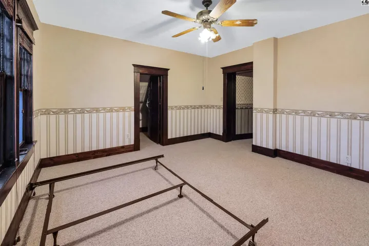 +"PublicRemarks": "Beautiful and spacious 4-bedroom, 2½-bath home located in Hutchinson, Ks. Offering 2,251 sq ft of finished space plus a basement, full of charm and functional living space. A standout feature is the huge 1,104 sq ft 3-car garage with workshop, complete with electrical throughout and overhead storage—perfect for projects, tools, or extra storage (storage shed in the backyard as well). This one-of-a-kind property blends historic charm, modern updates, and incredible workspace potential in a prime central location. Inside, you’ll find beautifully refinished original oak hardwood floors and classic wooden pocket doors that add timeless character. The home features a formal living room, formal dining room, and a second upstairs living room/family room, providing plenty of space to spread out. The kitchen includes a breakfast bar, and all appliances stay for added convenience. Additional highlights include main floor laundry, updated faucets, custom whole-house replacement windows, and wooden blinds. This home also offers three bonus rooms, perfect for offices, hobbies, or guest space. The spacious master bedroom includes double closets, and the thoughtful layout provides comfortable living for families of all sizes. Outside, enjoy relaxing on the covered front porch or the glassed/screened-in back porch with balcony overlooking the fully fenced backyard with patio, ideal for entertaining. The front landscaping also features a drip irrigation system for easy maintenance."