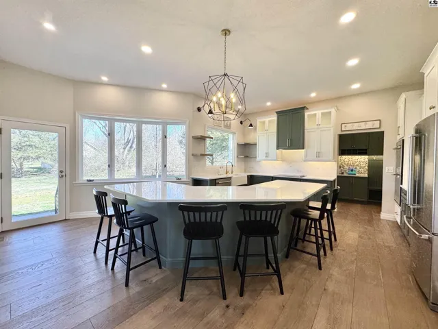 +"PublicRemarks": "This 4-bedroom, 3.5-bath ranch sits on over half an acre in Prairie Hills, just minutes from Prairie Dunes Golf Course. The main level has an open floor plan with a brand-new eat-in kitchen featuring new cabinets, center island, appliances, countertops, and a larger window. There’s a spacious living room with fireplace, a separate dining area, and new wood flooring, trim, paint, fixtures, laundry room, half bath, and drop zone. Three bedrooms are on the main floor, including a large primary suite with walk-in closet, soaking tub, and separate shower. The full basement adds another living area, fourth bedroom, full bath, a big office with built-ins, and two storage rooms—one is giant and could be finished into extra living space, a home gym, or whatever you need. Outside, enjoy a nice size yard with UGS and a large patio. Updates include heat and air (2016) and impact-resistant roof and gutters (2019)."