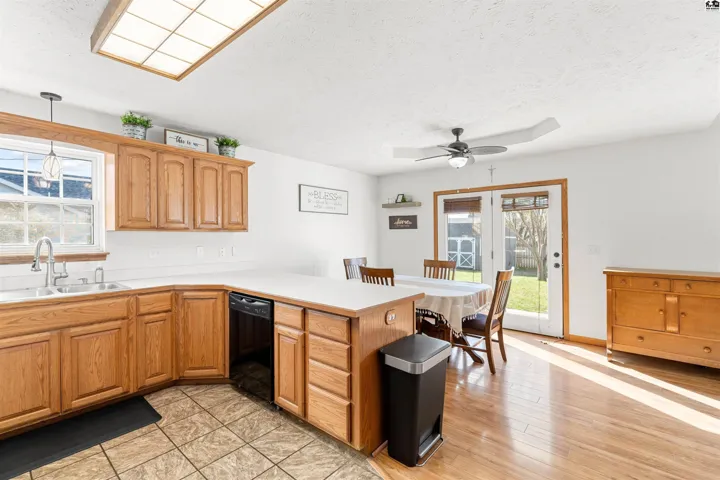 +"PublicRemarks": "Welcome home to this inviting ranch in the desirable Emerald Lake neighborhood. The main level offers a bright, open floor plan with vaulted ceilings that create a spacious feel throughout the living area. The kitchen features a convenient breakfast bar and dining space, perfect for everyday meals or gathering with family and friends. French doors lead out to the backyard, bringing in natural light and easy access to outdoor living. The primary suite is a comfortable retreat with vaulted ceilings, double closets, and a private full bath. A second bedroom and additional full bathroom are also located on the main floor, offering flexibility for family, guests or a home office. The fully finished basement expands your living space with a large family room, a third bedroom, and another full bath—ideal for guests, hobbies, or movie nights. Situated on a corner lot, the property includes a patio and privacy-fenced backyard, giving you a great space to relax, entertain, or let pets play. This home combines comfort, space, and a fantastic neighborhood setting."