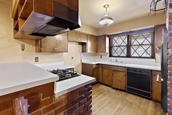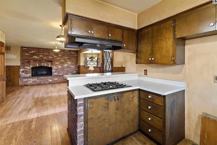 +"PublicRemarks": "Charm and nostalgia define this one and half story brick home with architecturally interesting details both inside and outside. On the main floor, you will find a family room with a brick wall and a living/dining area with another brick wall, both with wood burning fireplaces with gas starters. The kitchen features a pass- through to the dining/living area and has a gas cook top plus wall ovens. Also on the main floor are the owners bedroom with a bath and a second bedroom plus a hallway bath. Upstairs are two bedrooms and hallway bath. The basement has a very large family room with a large egress window and a good-sized mechanical room where you will find laundry, storage, and shelter with concrete block surrounding it. Patios in front and back of the home accommodate sun or shade as you wish. Lovely property needing some updates and you will have an amazing home. Schedule your private showing today."