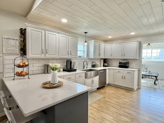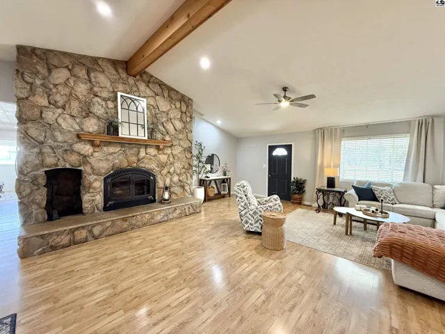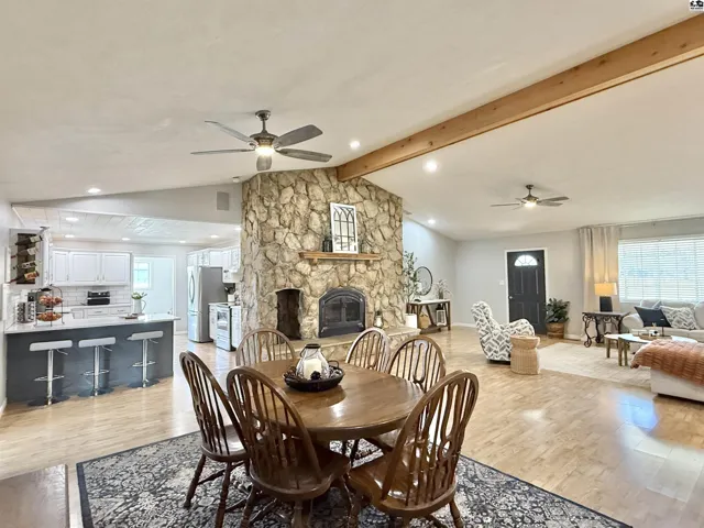 +"PublicRemarks": "Beautifully updated ranch on a spacious corner lot with incredible outdoor living. From the dream-worthy covered front porch to the covered back patio overlooking the vinyl fenced yard, this home is designed to be enjoyed both inside and out. Inside, you’ll find a stunning stone fireplace, a fully updated kitchen with a complete stainless steel appliance package, and a second main-floor living room filled with natural light. The home offers 3 bedrooms, 2 full bathrooms, and a versatile bonus room that would make the perfect mudroom, office, or flex space. A storage shed and storm shelter add even more function to this move-in ready home."