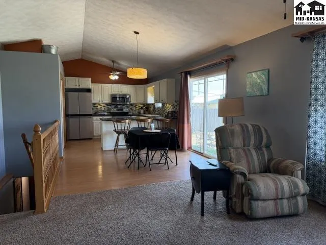 +"PublicRemarks": "Great location and an incredible value! This ranch-style home, built in 1999, is nestled in a desirable neighborhood and offers a spacious, open-concept main living area with vaulted ceilings and a kitchen that flows seamlessly into the living room—perfect for both everyday living and entertaining. This home features three generously sized bedrooms and two full bathrooms. The primary suite includes a walk-in closet, ample space for a king-size bed, and a private en-suite bath. The basement has a finished rec room, also excellent potential to add an additional bedroom, and plumbing is already in place for a third bathroom. A large storage room provides plenty of extra space. Step outside to enjoy the expansive patio and fully fenced backyard, The yard also includes play equipment with built-in storage for lawn equipment and tools.I Located in the highly desirable Buhler school district, this home truly has it all!"
