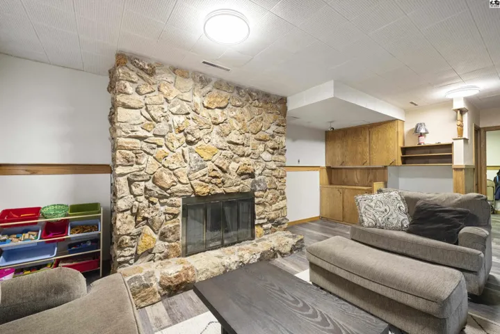 +"PublicRemarks": "Fall in love with this all-brick ranch, perfectly positioned on a corner lot in a convenient sought-after neighborhood.\u{A0} This well-maintained home offers 4 bedrooms and 2 updated bathrooms, with a bright, welcoming layout designed for both comfort and functionality. The main level features engineered wood flooring, recent carpet, fresh paint, and a refreshed kitchen complete with sleek stainless steel appliances including a gas stove, and updated finishes.\u{A0} Downstairs, you’ll find a generously sized living and recreation area—perfect for entertaining—plus a large fourth bedroom with an egress window. Recent improvements throughout the home include updated flooring, remodeled bathrooms with modern tile and granite touches.\u{A0} The attached two car garage is oversized and offers extra depth. Step outside to a fully fenced backyard featuring low-maintenance vinyl fencing, underground sprinklers on a private well with timer, and a handy 13X20 detached shop with heating and cooling (sold as-is).\u{A0} New roof in 2023!"