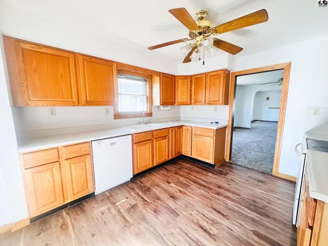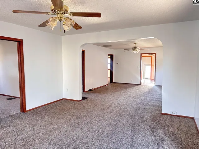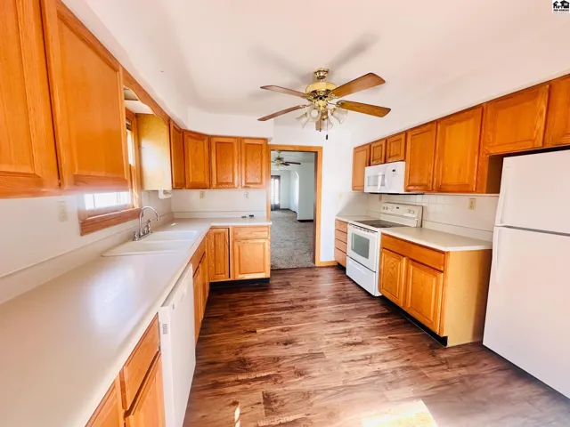 +"PublicRemarks": "Welcome home to this beautifully maintained, move-in ready property packed with updates and charm! A welcoming concrete front porch and nice landscaping with a full sprinkler system (front and back) create fantastic curb appeal. Inside, the main floor features a bright and spacious living and dining room combination with large windows that fill the space with natural light. Three generously sized bedrooms—all on one level—offer comfortable living with ample closet space. A convenient hallway closet includes a stackable washer and dryer. The updated bathroom boasts a modern vanity and a tub/shower combo. The recently updated kitchen is a standout, featuring solid oak cabinetry, abundant storage, and included appliances—electric stove, microhood, dishwasher, and refrigerator—plus a cozy breakfast nook. From here, enjoy easy access to both the basement and backyard. The basement expands your living space with a large family room, two bonus rooms with closets, a second bathroom with a stand-up shower, and a dedicated laundry room option. An unfinished storage area offers potential for future finishing. Out back, enjoy a privacy-fenced yard, storage building, and alley access to a heated detached garage with extra side storage and attic space. Major updates include new flooring, central heat (2022), roof (2023), storm windows (2023), and water heater (2024). Truly turnkey—just move in and enjoy!"