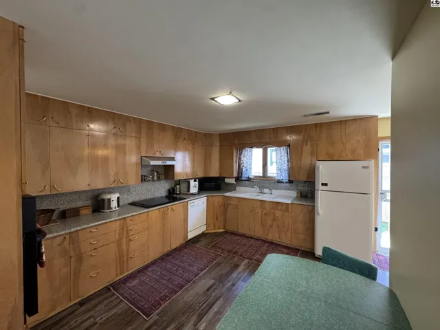 +"PublicRemarks": "Welcome to this inviting ranchette-style home, offering the ease of single-level living on a crawlspace foundation. Inside the front door, you'll find a bright, naturally lit living room. The kitchen features a built-in electric wall oven, separate cooktop, dishwasher, fridge and a handy pantry. The master bedroom boasts a private half bath. A spacious full bathroom and second bedroom are centrally located as well. Mudroom with laundry and an extra shower connects the attached one-car garage. Outside enjoy a fenced backyard with fire pit, covered front porch, alley access and a detached one-car garage - all in a prime Kinsley location! Schedule your showing today!!"