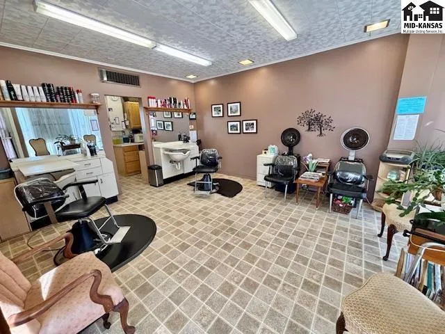 Turn key beauty shop for sale…equipment, building, precious off street covered & open parking in downtown McPherson. Bring your own clientele and your ready to go! Maybe a beauty shop isn’t your vision for this property. Did you know it was a drive through liquor store in a past life? It’s also perfect for office space other business ventures. The lot is 142′ deep, so there is plenty of room for expansion possibilities. Make your move quick, as these downtown opportunities don’t come along often.