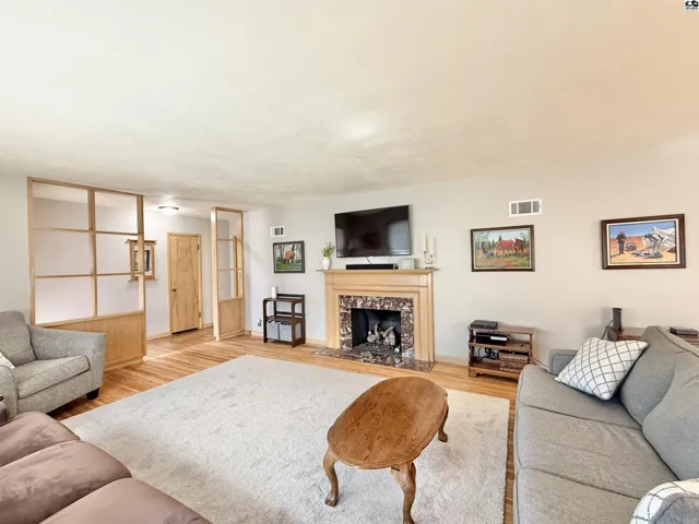 +"PublicRemarks": "Welcome to this sprawling mid-century ranch, perfectly situated in a peaceful countryside neighborhood on a generous corner lot of over half an acre. This move-in ready home blends timeless character with thoughtful updates throughout. Step inside to find beautiful oak hardwood floors and an abundance of natural light that fills every room, creating a warm and inviting atmosphere. Built-ins are featured throughout the home, adding both charm and practical storage. The updated kitchen and bathrooms offer modern convenience while maintaining the home’s classic appeal. The spacious living area is anchored by a cozy gas log fireplace, perfect for relaxing evenings. Downstairs, the finished basement provides a versatile recreational room ideal for entertaining, hobbies, or additional living space. Outside, the property truly shines with large mature trees, a fully fenced yard with durable vinyl fencing, and underground sprinkling to keep the landscape lush and green. A storage shed adds extra functionality, and the expansive lot offers plenty of room to enjoy outdoor living. Conveniently located yet tucked into a quiet setting, this home offers the best of both worlds...space, comfort, and accessibility. Don’t miss your opportunity to own this beautifully maintained mid-century home."