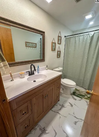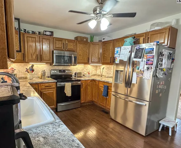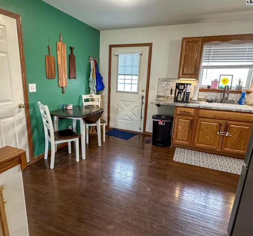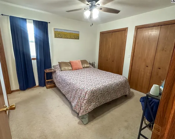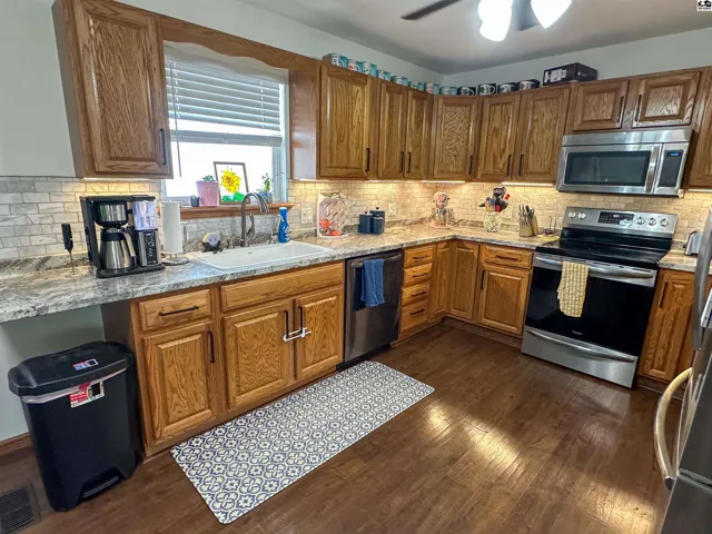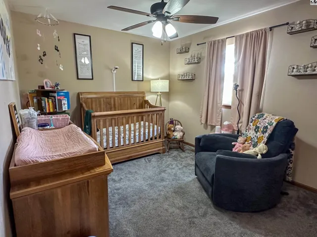 +"PublicRemarks": "Welcome to this nicely built 4 bedroom, 3 bath home featuring impressive living space and upgrades around every corner. The main floor features gorgeous laminate flooring throughout the living, dining and kitchen. Functional kitchen with abundant beautiful cabinets, countertops, backsplash and stainless steel appliances. The 2 bedrooms on the main floor are nice in size with large closets. The owners suite is complete with an adjacent full bathroom. In the basement you will find the family room, 2 more bedrooms, a full bath, spacious laundry room, large storage/mechanical room and a concrete storm shelter. The extra wide garage complete with workbench is perfect for your vehicles and storage. Roof has been replaced with class 3 impact resistant shingles, new guttering has been installed and new siding has been put on the home since the 2025 hail storm. Home is located near Wall Park and sits on a large corner lot with a wooden privacy fence and storage shed. Call to take a look at this amazing home today."