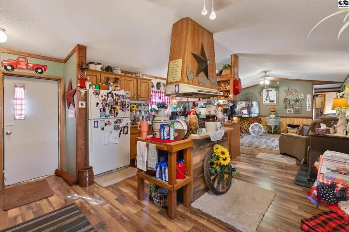 +"PublicRemarks": "Affordable country living on paved frontage with fence around the pasture. This property offers so much for one low price. Enjoy the serenity of country living, complete with a chicken coop, sand plum thickets, a nice big 30 x40 shop with concrete floors and of course the home. New metal roof 2025. Was a 2 bedroom home - the 2nd bedroom was converted to a dining room but could be converted back into a bedroom."